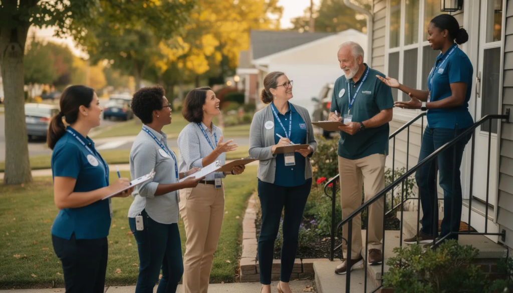 Canvassing | Door-to-door voter contact with mobile-optimized apps | Cut efficient turfs, track real-time results, adjust GOTV plans daily |